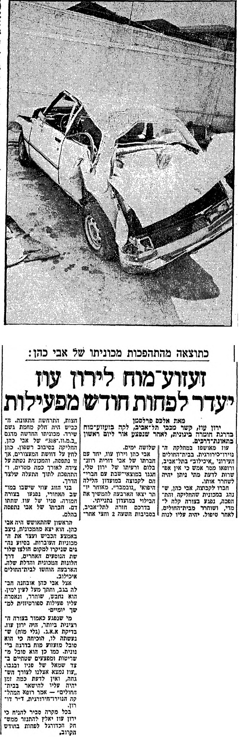 | 02:14, 3 ביולי 2022 | אבי כהן תאונה.jpg (קובץ) | 1.49 מ"ב | == תקציר == {{תיוג עיתונים |שם עיתון=מעריב |סיווג=אחר}} {{תיוג שחקנים |שחקן1=אבי כהן, שחקן2=ירון עוז }} אבי כהן וירון עוז מעורבים בתאונת דרכים, מרץ... | 1 | |