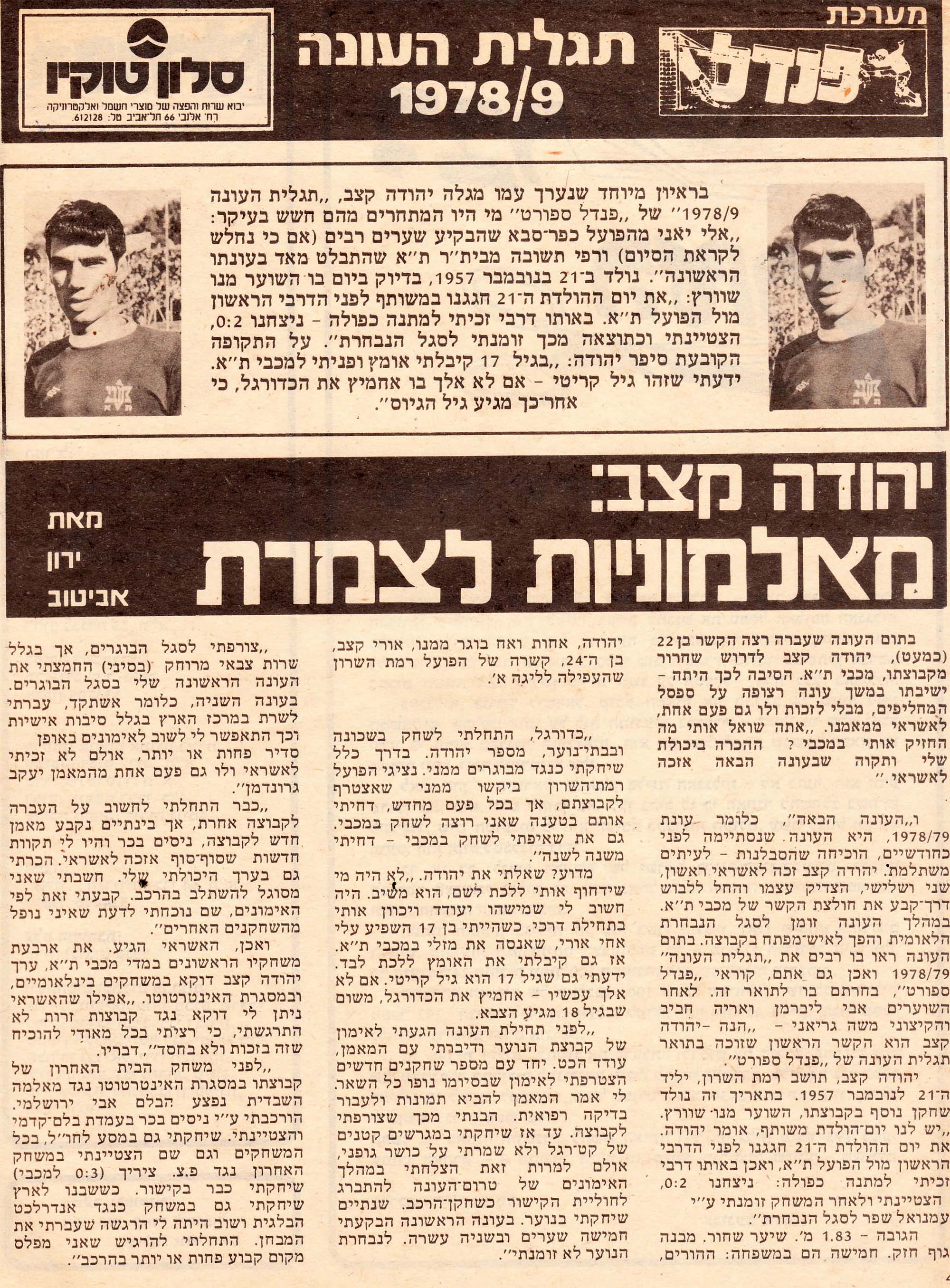 | 03:01, 3 ביולי 2022 | פנדל 15-08-1979 מגזין 194 יהודה קצב תגלית העונה חלק 2.jpg (קובץ) | 784 ק"ב | {|תיוג שחקנים |שחקן 1=יהודה קצב}} יהודה קצב נבחר לתגלית העונה 1978/79, חלק ב' | 1 | |