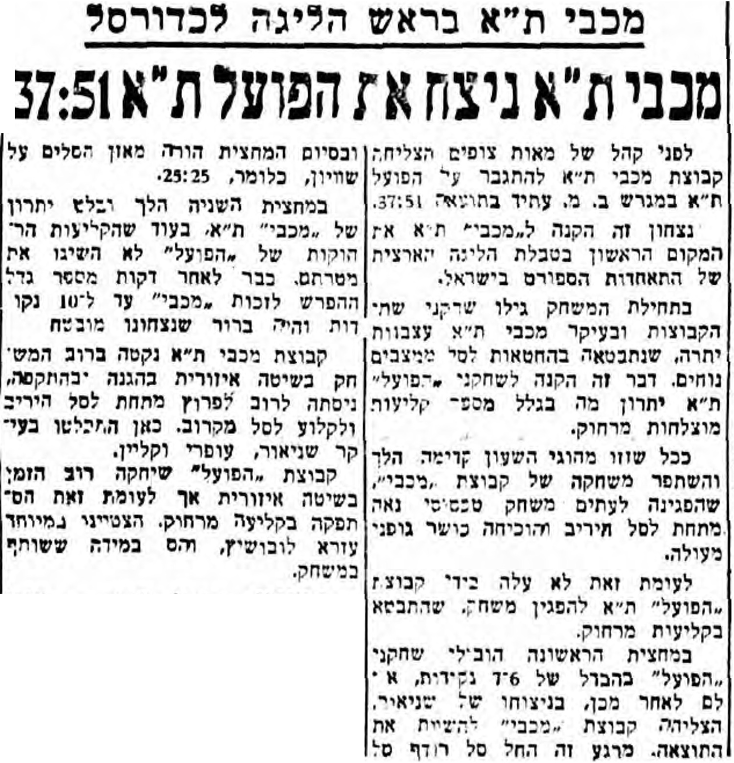 - עיתונות למשחק כדורסל מה-21 באוגוסט 1953