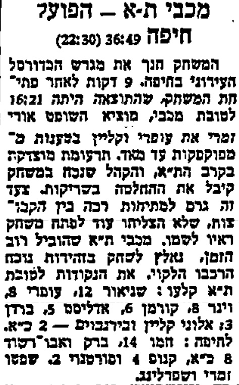 מתוך חדשות הספורט, ה-6 במרץ 1955.