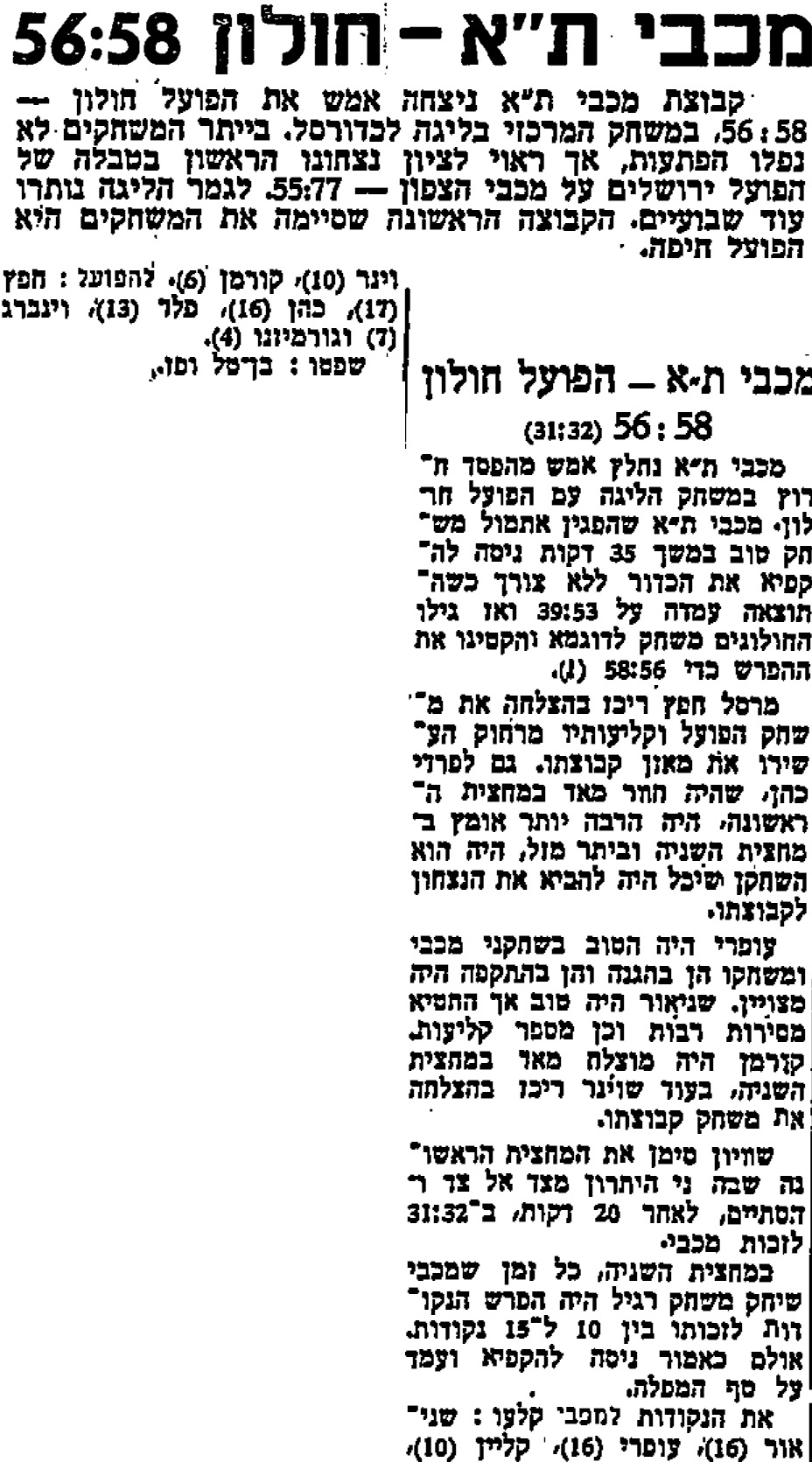 מתוך חדשות הספורט, ה-6 בנובמבר 1955.