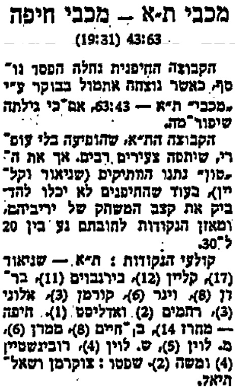 מתוך חדשות הספורט, ה-10 באפריל 1955.