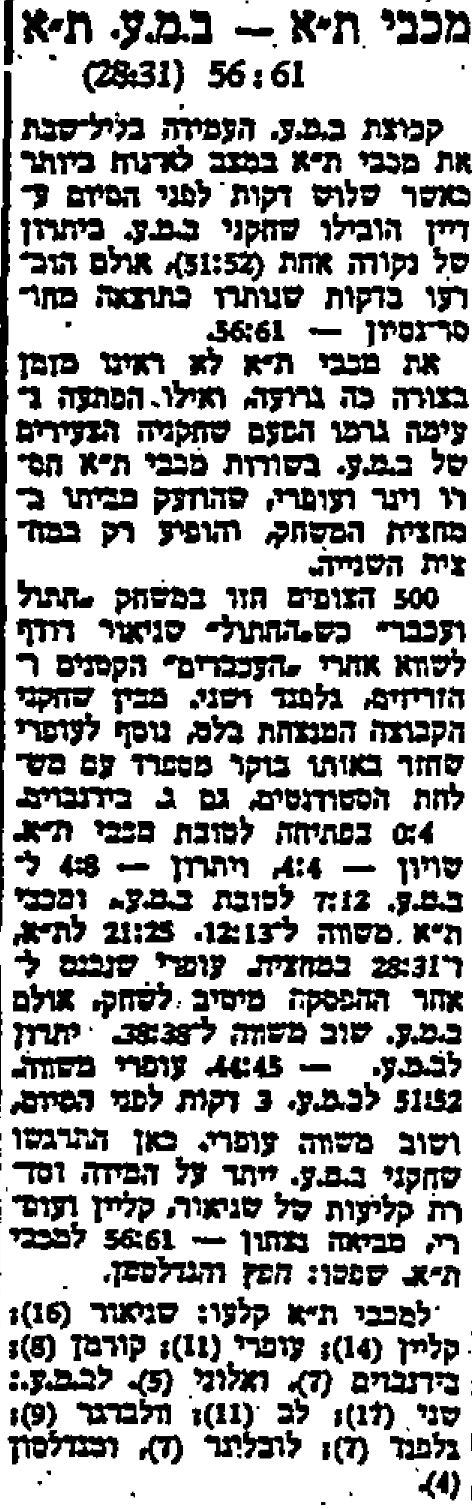 מתוך חדשות הספורט, ה-11 בספטמבר 1955.