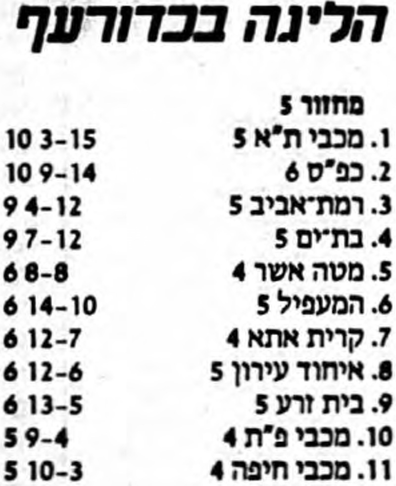 - עיתונות כדורעף/טבלאות ליגה