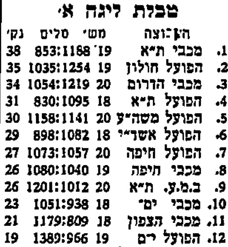 - עיתונות כדורסל/טבלאות ליגה