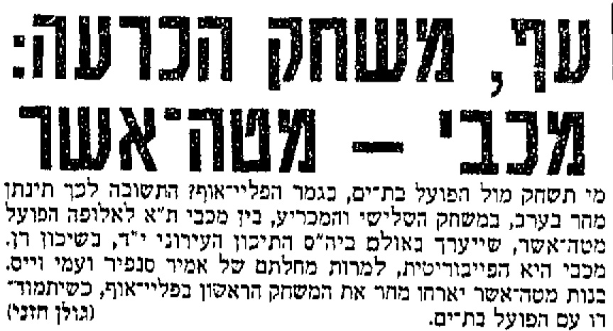 - עיתונות כדורעף נגד הפועל מטה אשר