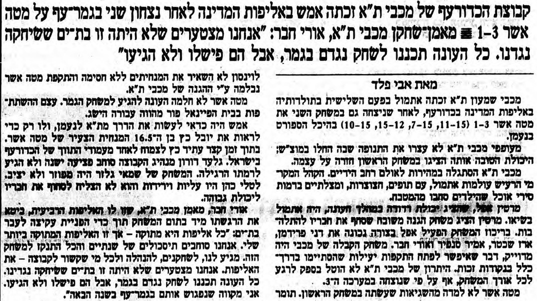 - עיתונות כדורעף נגד הפועל מטה אשר