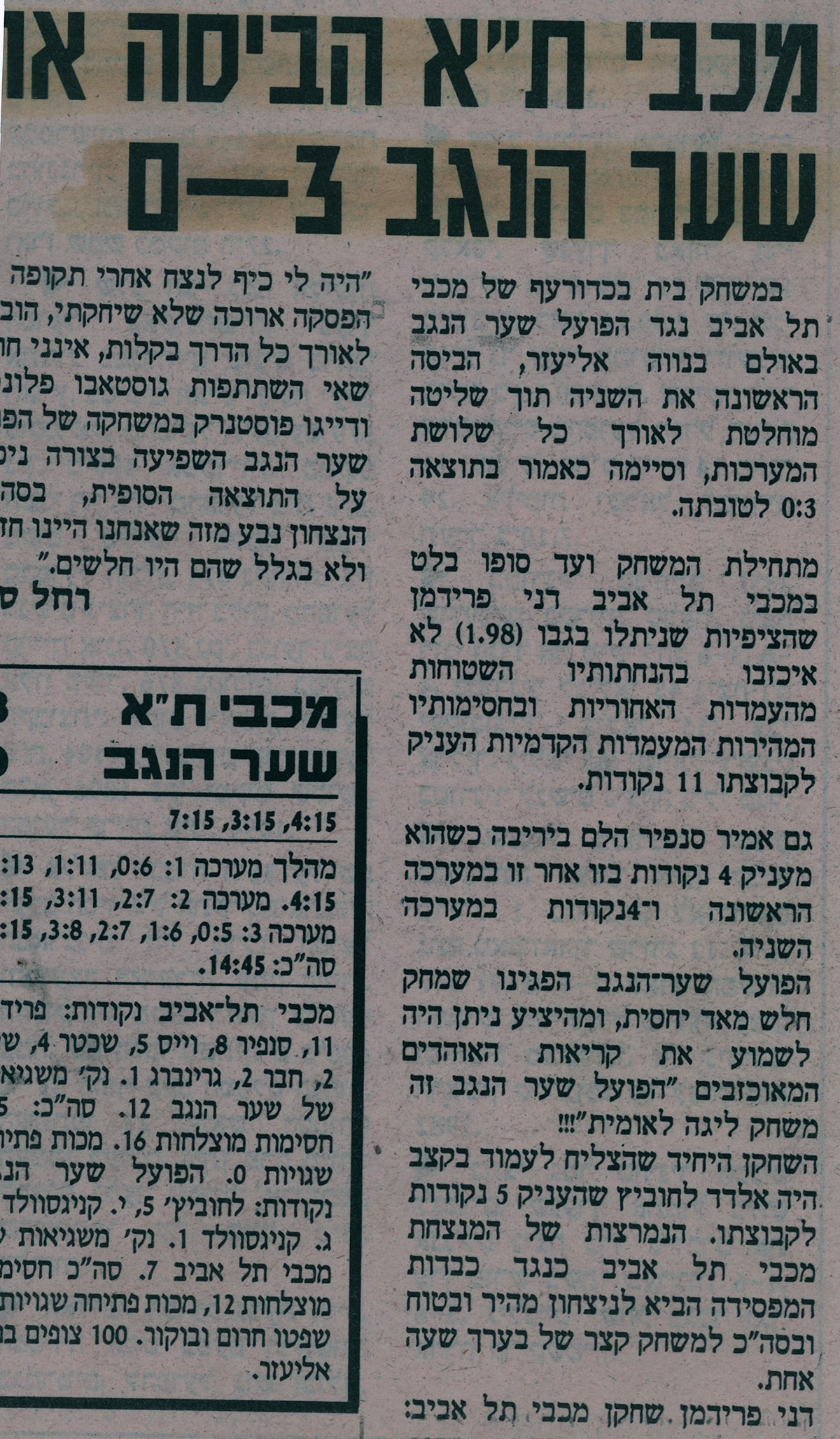 - עיתונות כדורעף נגד הפועל שער הנגב