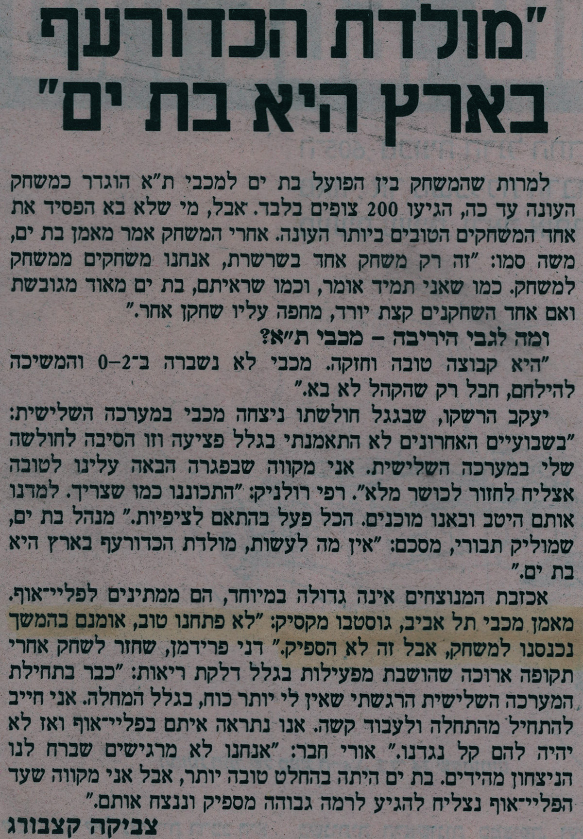 - עיתונות כדורעף מה-26 בנובמבר 1989