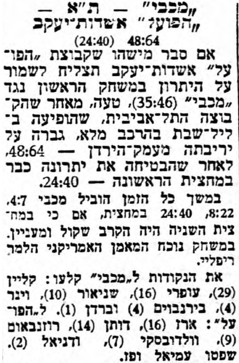 - עיתונות כדורסל נגד הפועל אשדות יעקב
