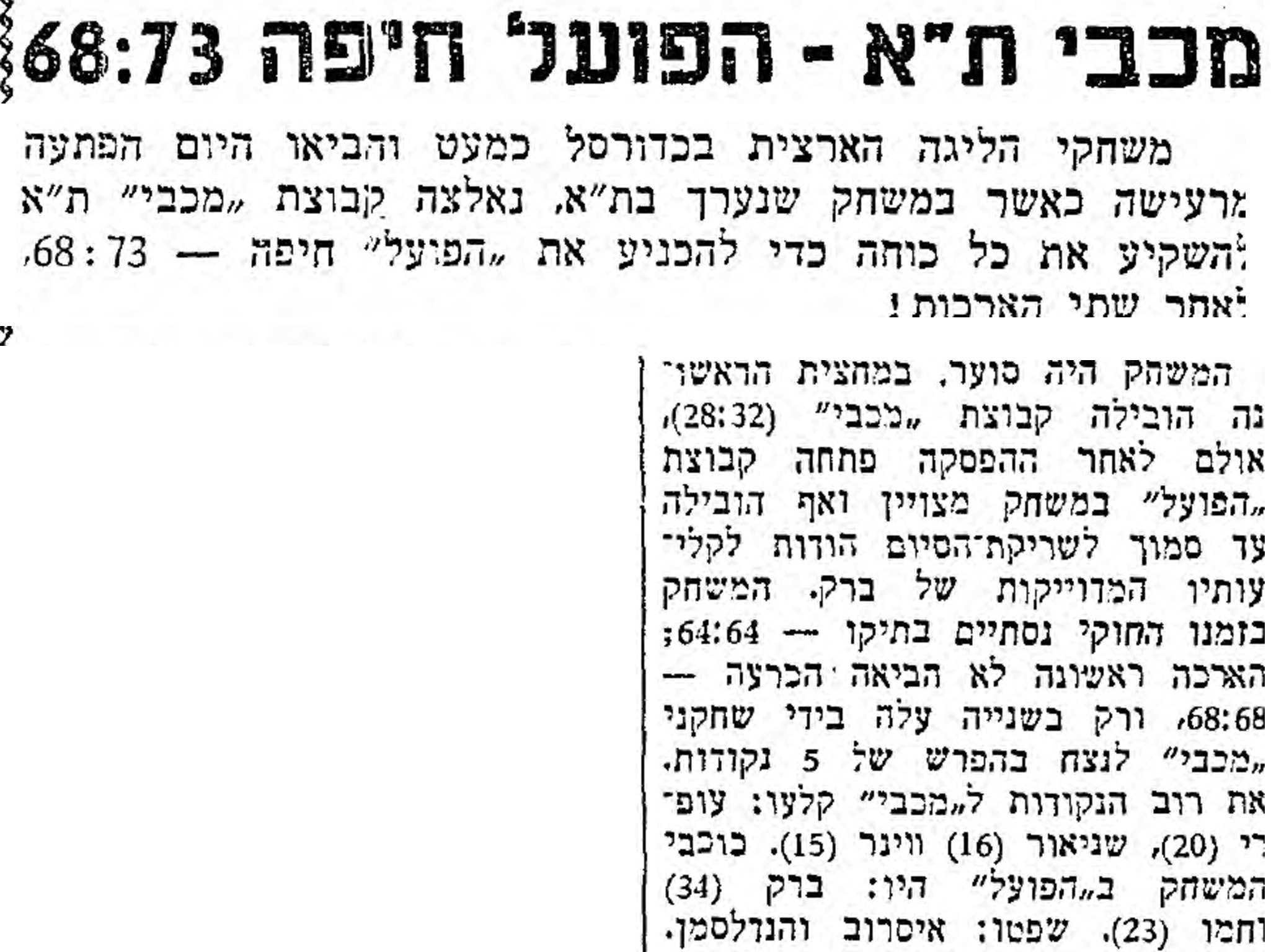 - עיתונות למשחק כדורסל מה-21 באוקטובר 1955