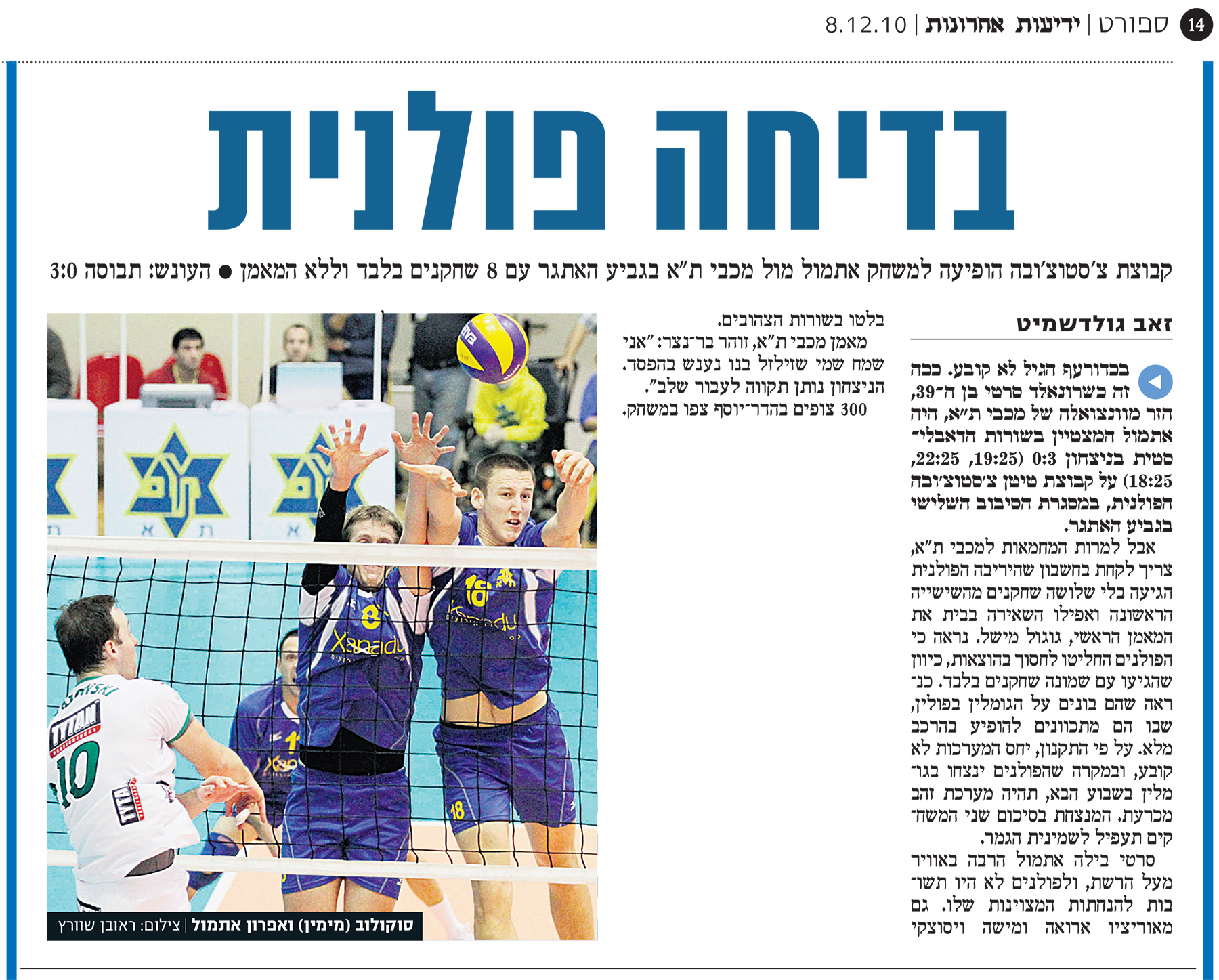 22-03-2010 ידיעות אחרונות סיקור מכבי תל אביב נגד מטה אשר (23.03.2010).jpg