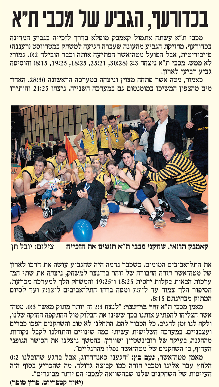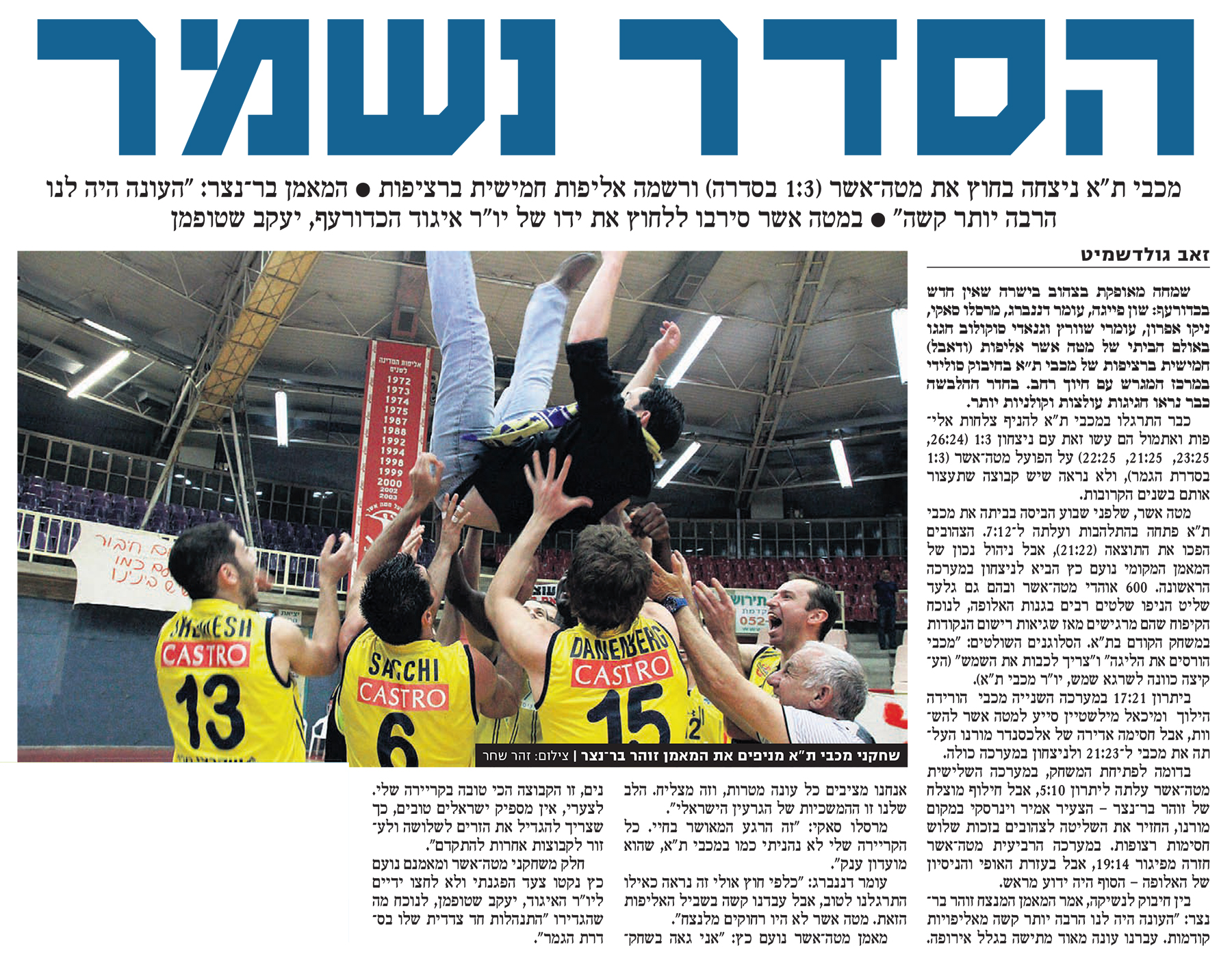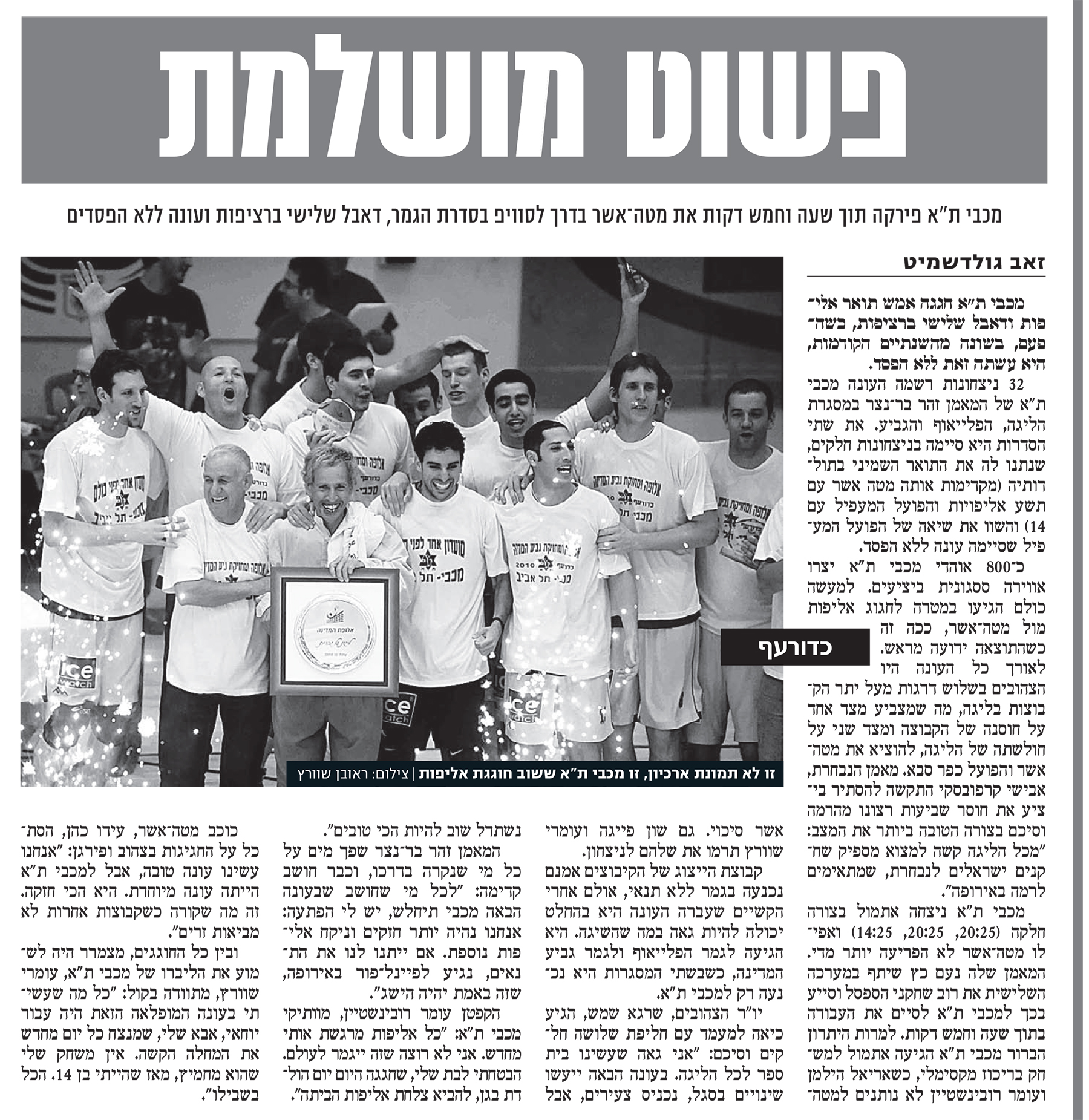 21-04-2011 ידיעות אחרונות סיקור מכבי תל אביב נגד מכבי הוד השרון (22.04.2011).jpg