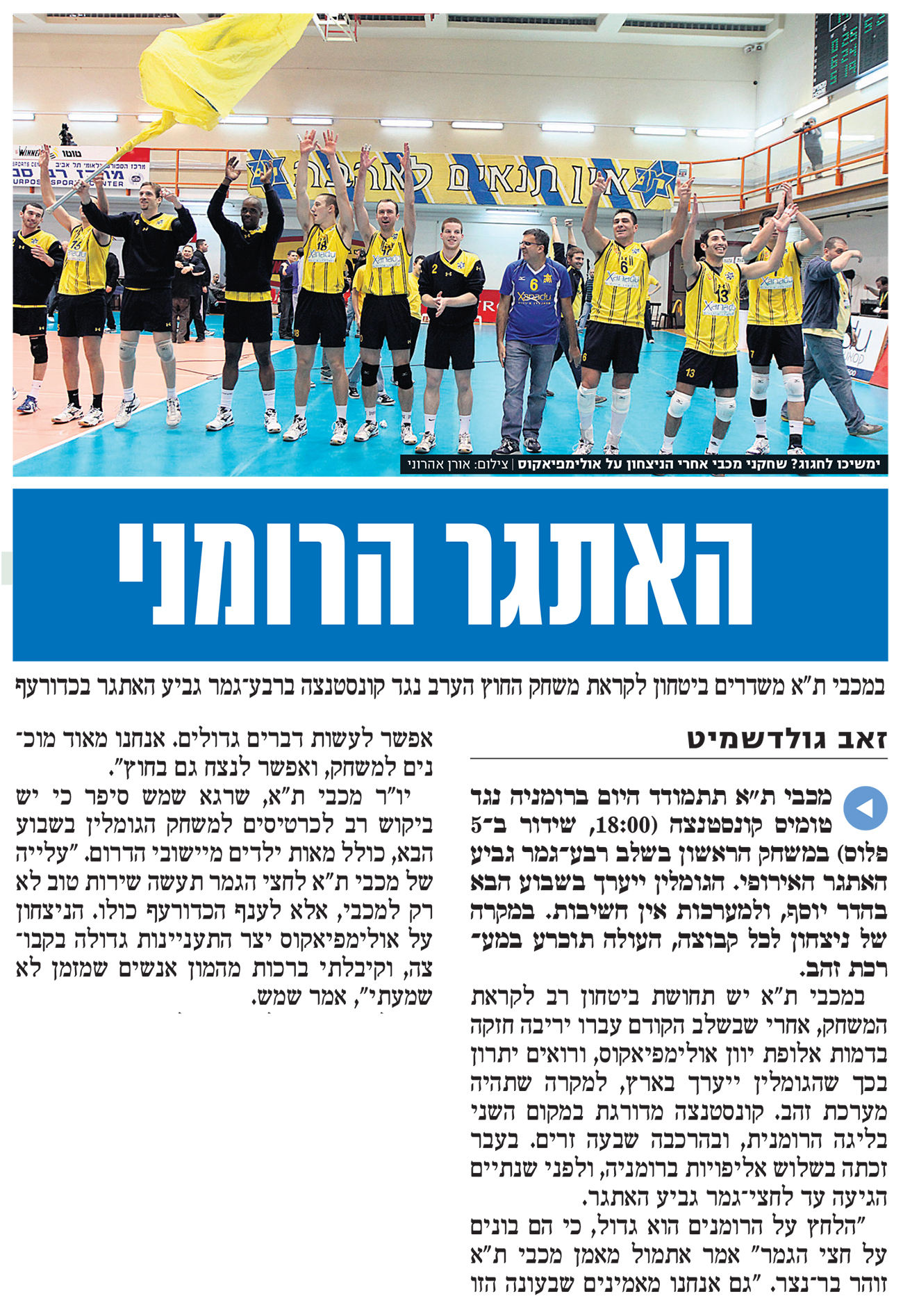 01-03-2012 ידיעות אחרונות סיקור מכבי תל אביב נגד טומיס קונסטנטה (02.03.2012).jpg
