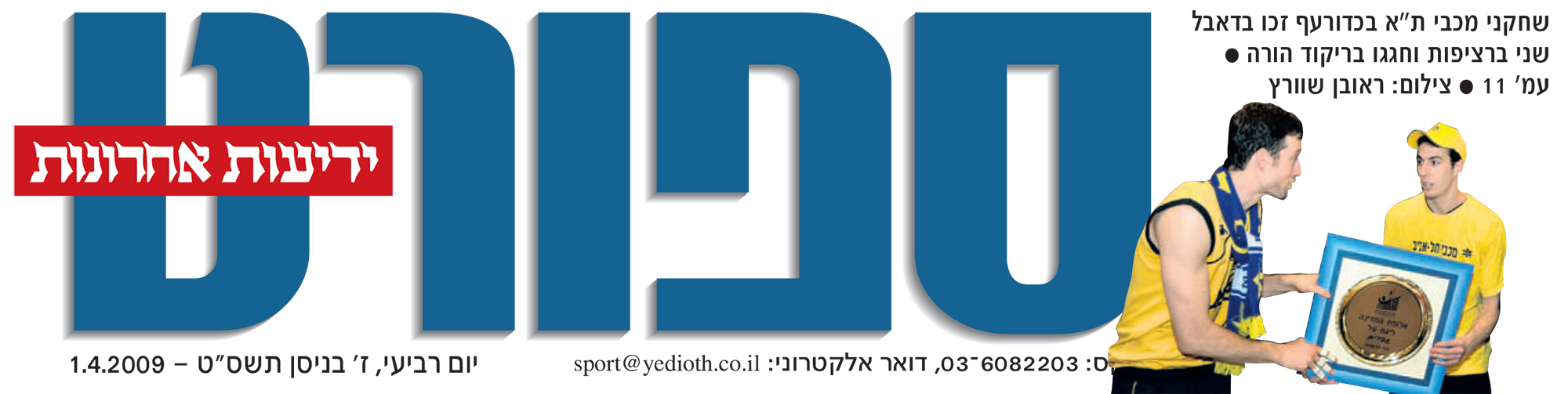31-03-2009 ידיעות אחרונות סיקור משחק מכבי תל אביב נגד הוד השרון (01.04.2009).jpg