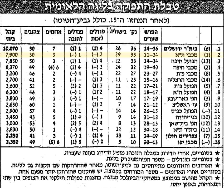 קובץ:טבלת תפוקה לאחר מחזור 15 עונת 1995-96.jpg: הבדלים בין גרסאות בדף