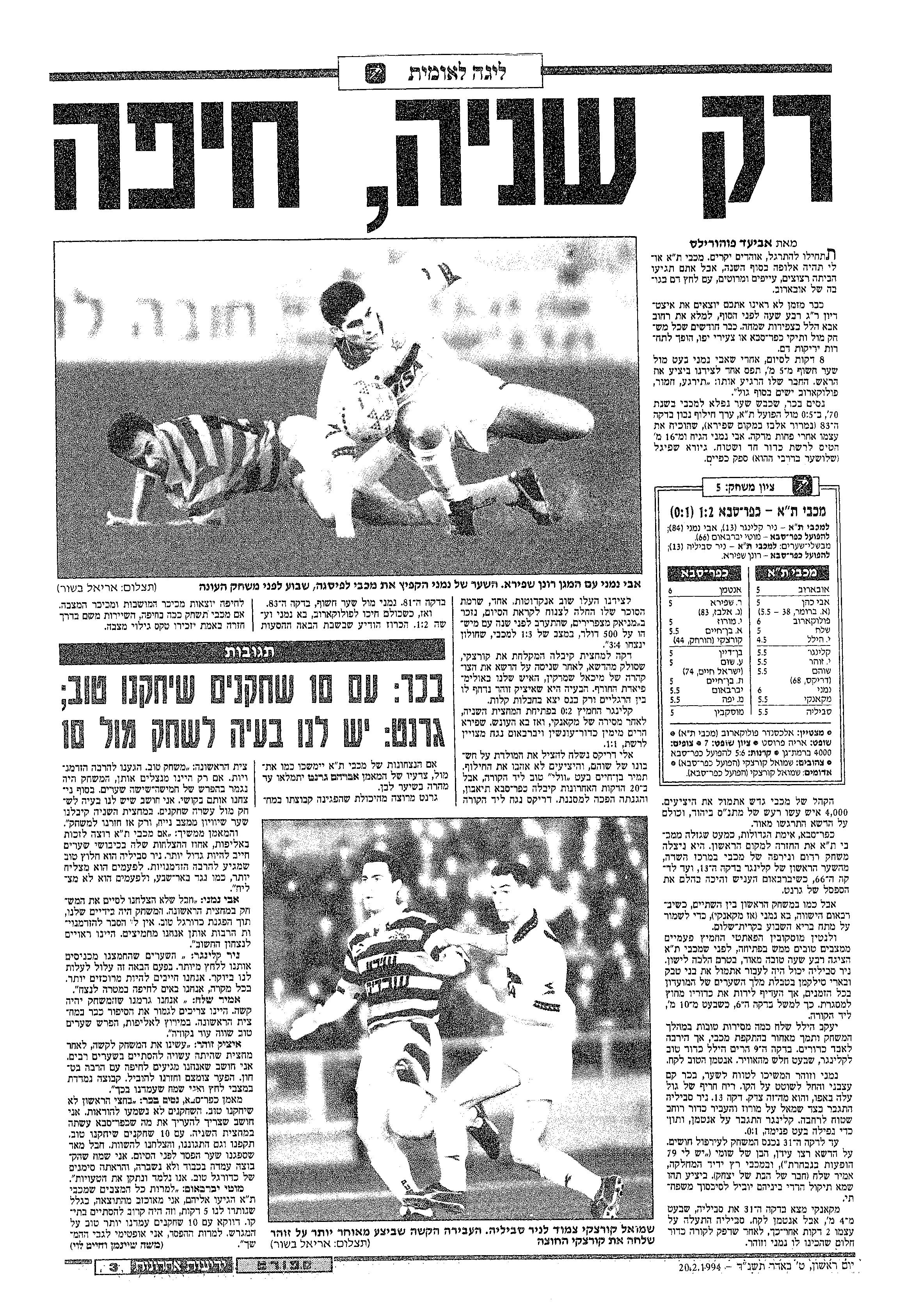 |שיוך משחק=משחק: 19-02-1994 מכבי תל אביב נגד הפועל כפר סבא - ליגה לאומית}} | |שיוך משחק=משחק:19-02-1994 מכבי תל אביב נגד הפועל כפר סבא - ליגה לאומית}} | ||