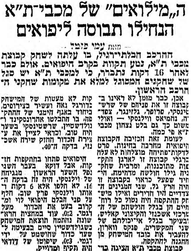 |שיוך משחק=משחק: 25-03-1961 מכבי יפו נגד מכבי תל אביב - ליגה לאומית | |שיוך משחק=משחק:25-03-1961 מכבי יפו נגד מכבי תל אביב - ליגה לאומית | ||