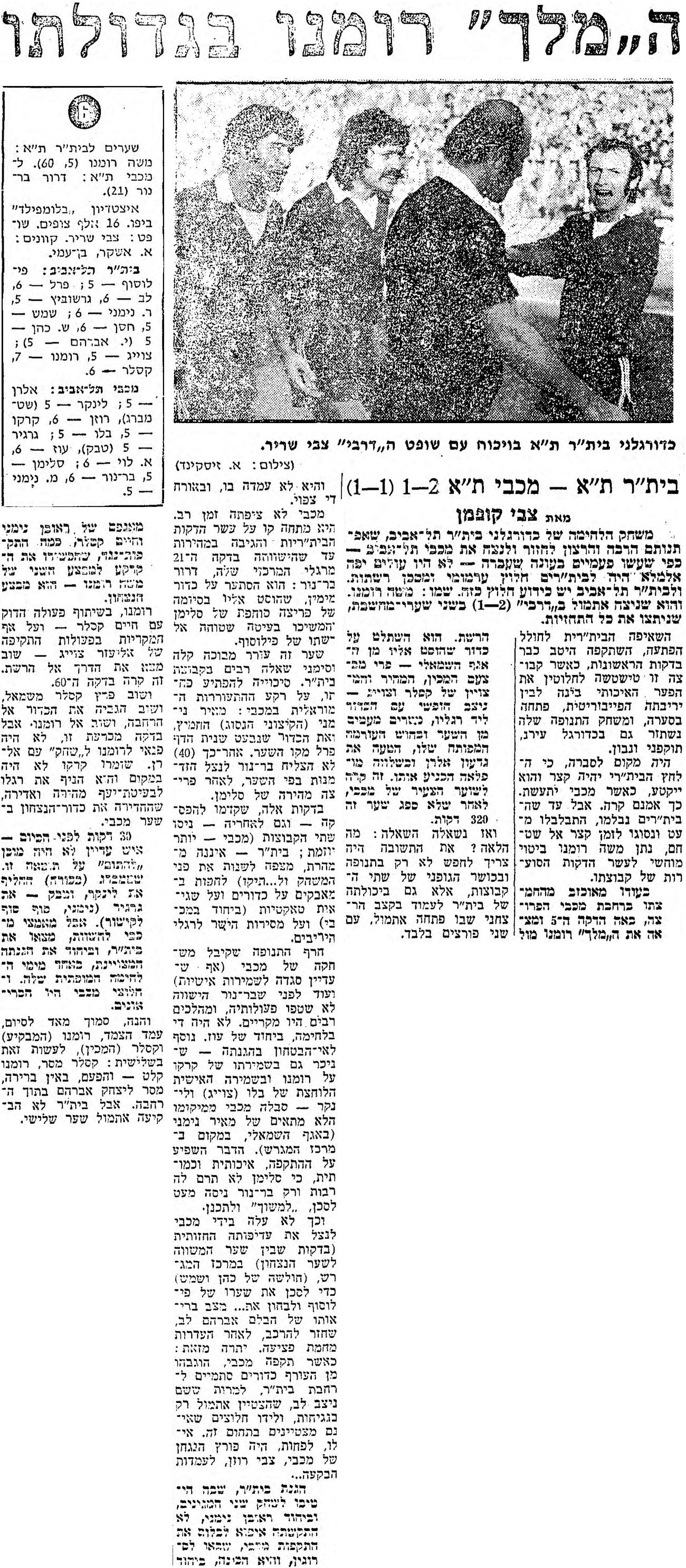 |שיוך משחק=משחק: 30-11-1974 מכבי תל אביב נגד בית"ר תל אביב - ליגה לאומית | |שיוך משחק=משחק:30-11-1974 מכבי תל אביב נגד בית"ר תל אביב - ליגה לאומית | ||