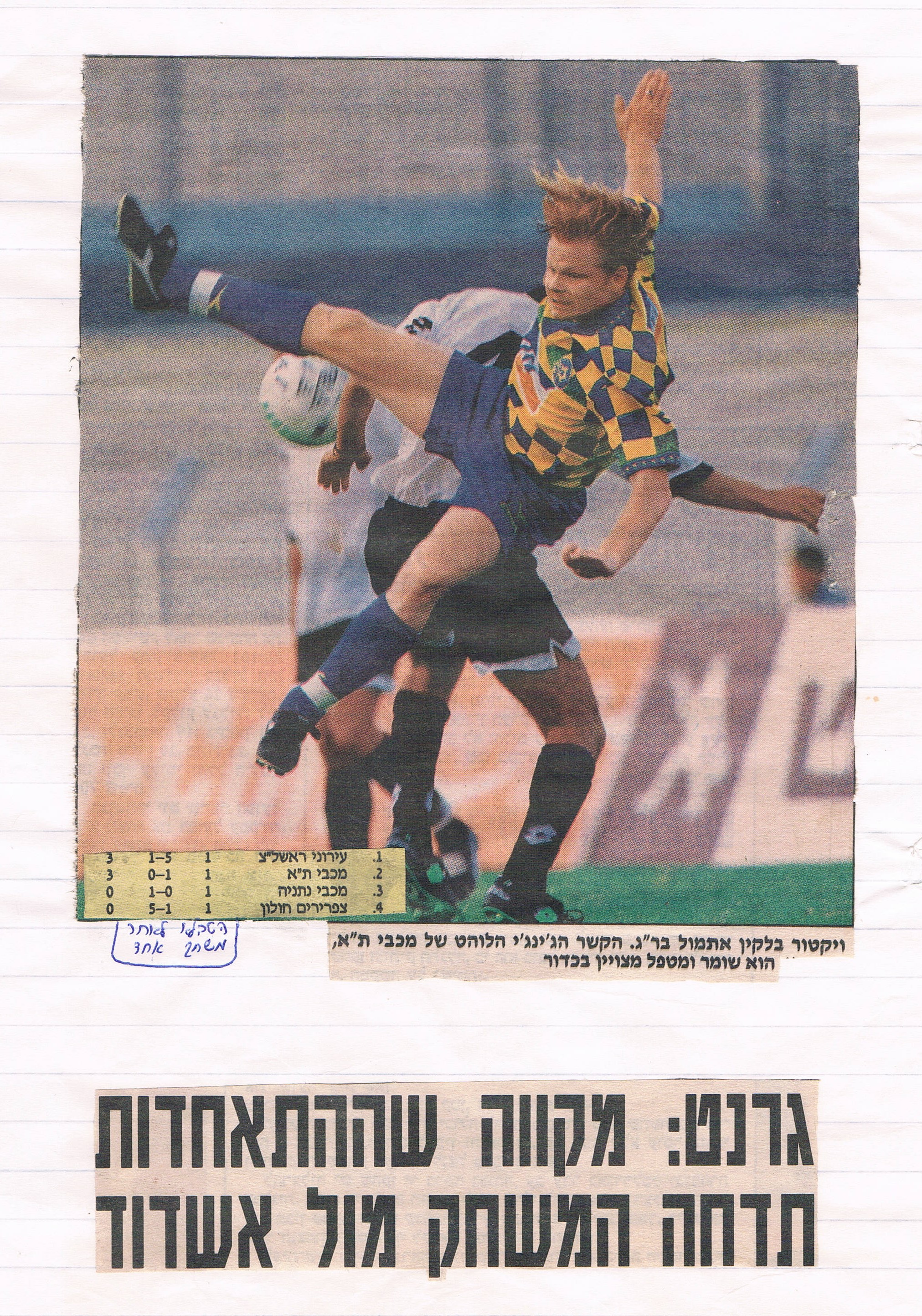 ({{תיוג עיתונים |שיוך משחק=משחק: 20-08-1994 מכבי תל אביב נגד מכבי נתניה - גביע הטוטו}} {{תיוג שחקנים |שחקן1=ויקטור בלקין }})