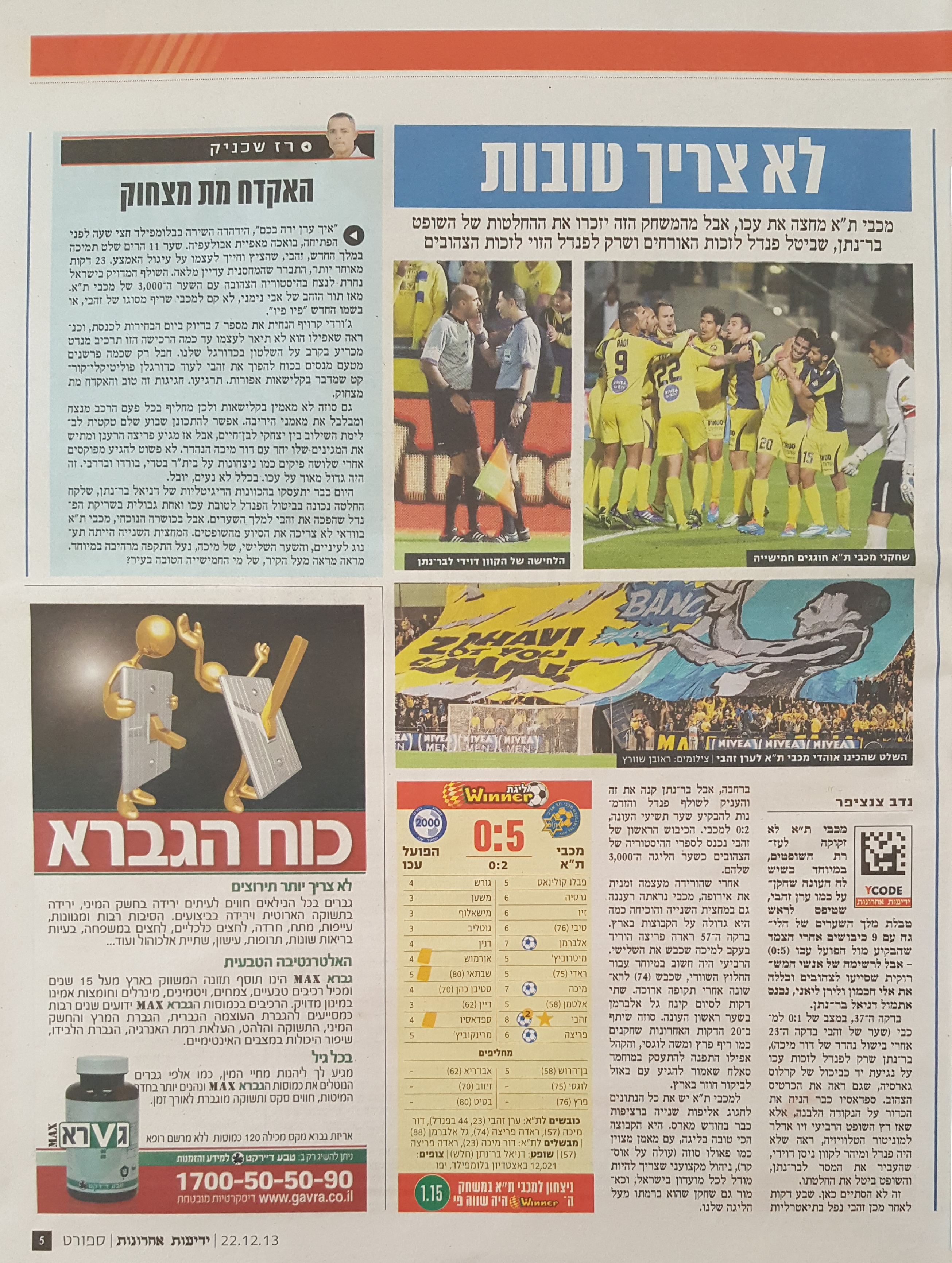 {{תיוג עיתונים |שיוך משחק=משחק: 21-12-2013 מכבי תל אביב נגד הפועל עכו - ליגת העל}} | {{תיוג עיתונים |שיוך משחק=משחק:21-12-2013 מכבי תל אביב נגד הפועל עכו - ליגת העל}} | ||