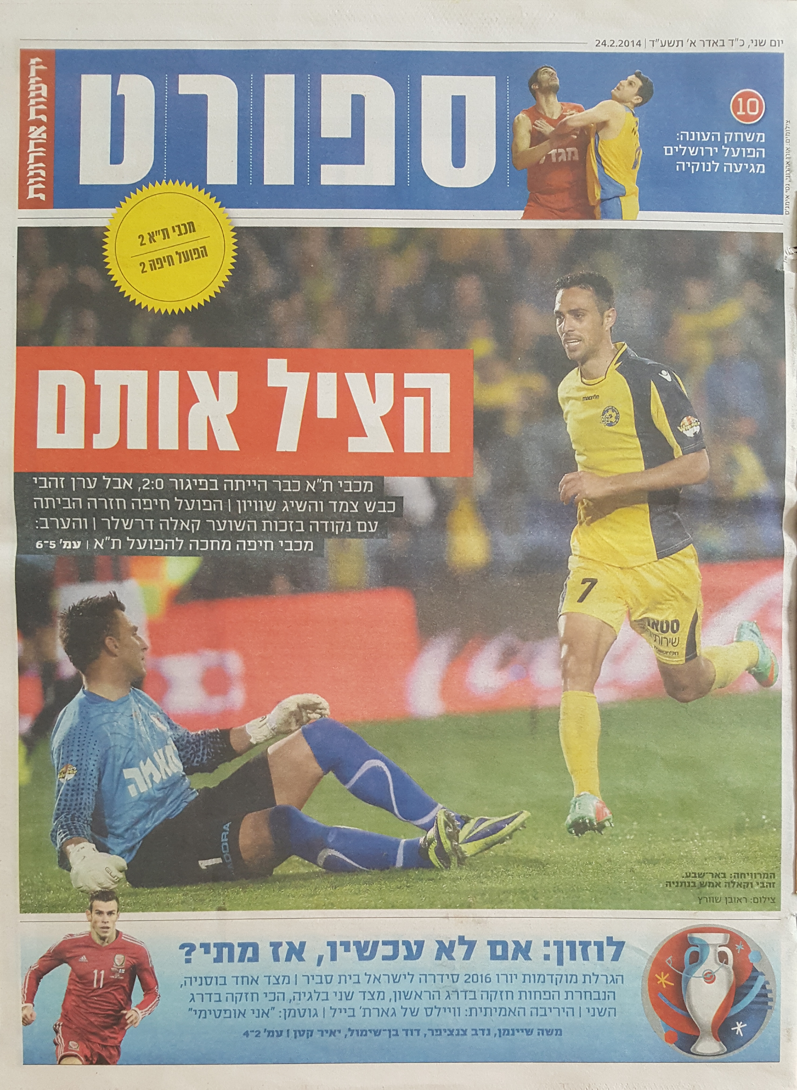 - (הורדה) הפועל חיפה 23-02.2014 עיתון1.jpg . . 3,636 × 2,660 . . 5.65 מ"ב . . Ticketmaster . . 09:10, 10 באוקטובר 2020