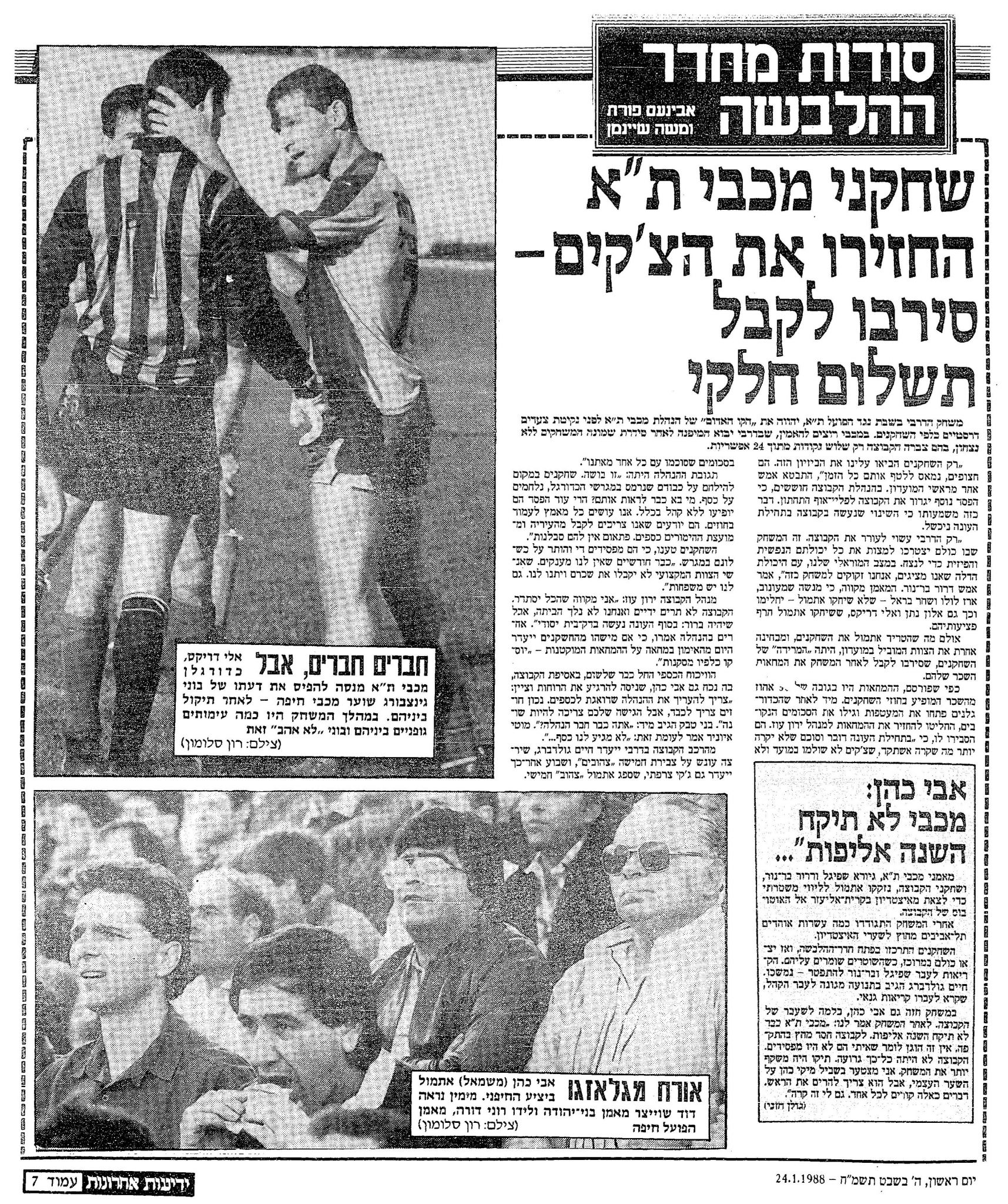 מתוך ידיעות אחרונות, ה-24 בינואר 1988.