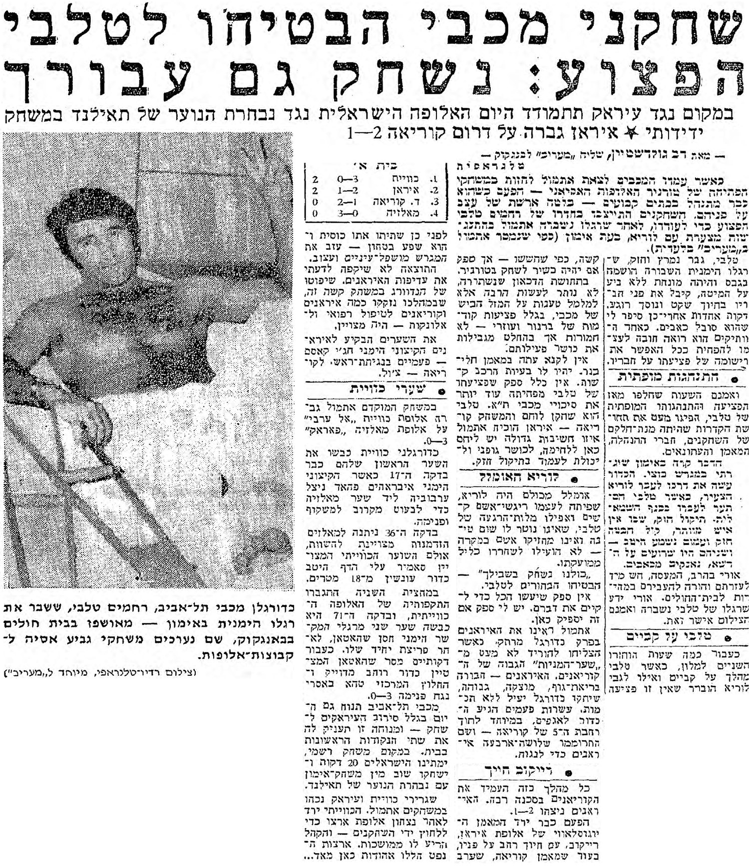 {{תיוג עיתונים |שם עיתון=מעריב |שיוך משחק=משחק:25-03-1971 אל שורטה נגד מכבי תל אביב - גביע אסיה לאלופות |תאריך פרסום=25-03-1970