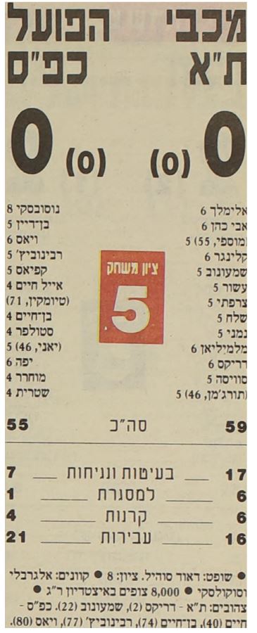 שם עיתון= חדשות סיווג= סיקור משחק שיוך משחק= 20-10-1990 מכבי תל אביב נגד הפועל כפר סבא - ליגה לאומית שיוך פרופיל= אופן שימוש: אבי נמני, אמיר שלח, ניר קלינגר, אלי דריקס